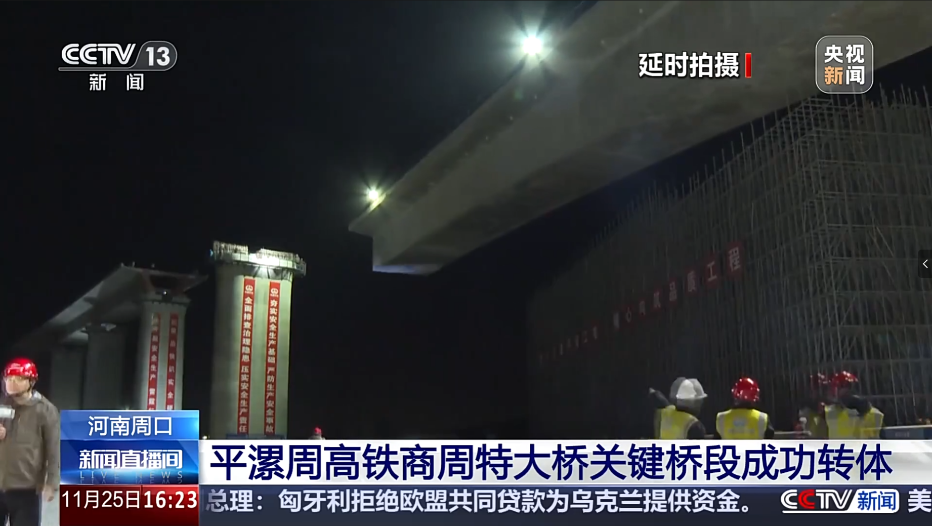 河南新聞聯播丨平漯周高鐵首個近萬噸“巨梁”成功轉體